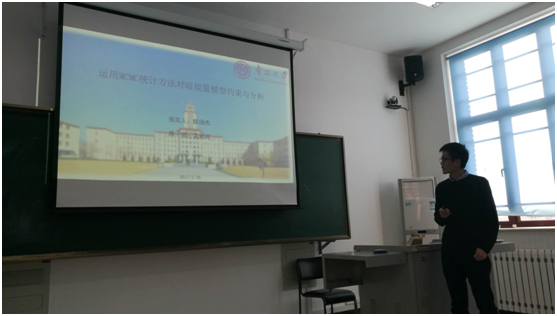 2018年首次“理论物理青年学术论坛”于1月16日在色中色 三教301举行。理论物理方向师生共三十余人参加。本次论坛邀请了三位优秀研究生就各自在研究领域取得的最新进展进行了介绍。郭书源同学利用colored-Zee-Babu模型解释了LHCb实验上出现的Rk(*)反常现象。颜扬杰同学则是运用马尔科夫链蒙特卡罗统计方法对宇宙暗能量模型进行约束。最后魏弋翔同在广义不确定原理的框架下,讨论Dirac约束理论对力学系统产生的修正。三位同学精彩的学术报告,引起了参与论坛师生们的激烈讨论。大家表示这样的论坛形式对于进一步提高研究生的学术水平,开阔研究生的学术视野,增强相互之间的合作与交流是十分有益的。2018年春季学期,“理论物理青年学术论坛”将邀请更多的青年学者介绍理论物理各个方向的最新成果,欢迎色中色 各位老师与同学参加!