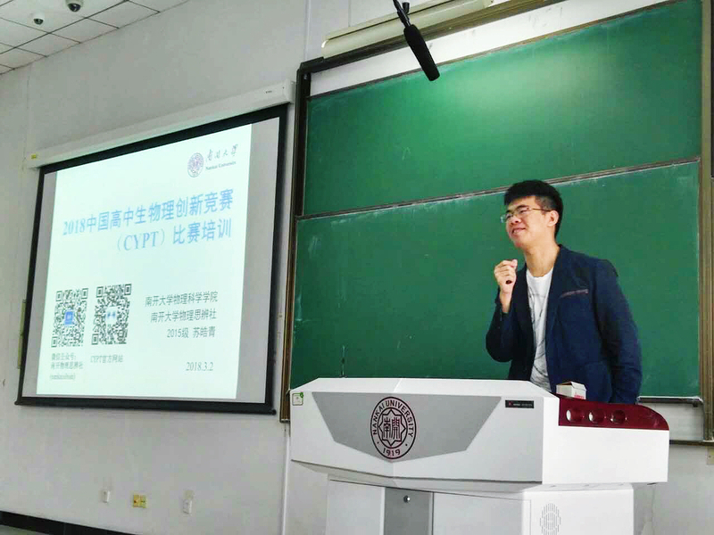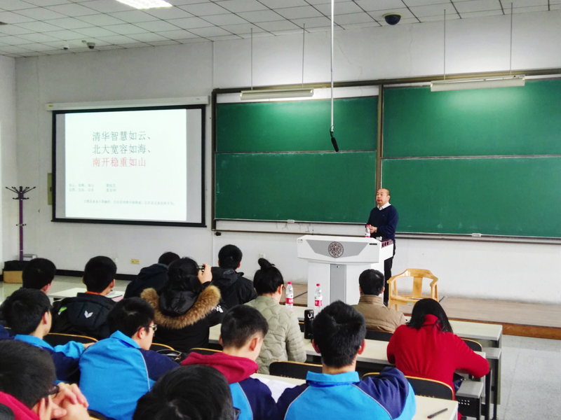 在稍作休整后,参营营员快速进入与赛状态。3月2日下午便踔厉奋发地投入到来到南开园后的第一场笔试角逐赛。试后学员们表示,短短一日感受到的南开氛围已使他们倍受鼓舞,愈感振奋,一场笔试也成为近距离感受南开的邂逅。在紧张的笔试后,为充实营员的参营生活,由余华老师主讲的有关色中色 本科生教学模式的专题讲座在第二主教学楼B204如期举行。余华老师拥有多年的伯苓班班主任经验,对本科生培养计划、伯苓班教学体系都谙熟于心,系统详实化的讲解为中学生全面铺展了南开物理的教学模式,促进了物理学科人才的选拔与培养工作。