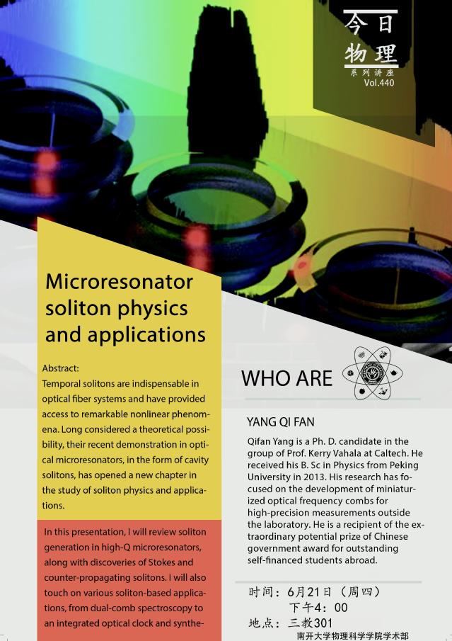 【学术报告】Microresonator soliton physics and applications