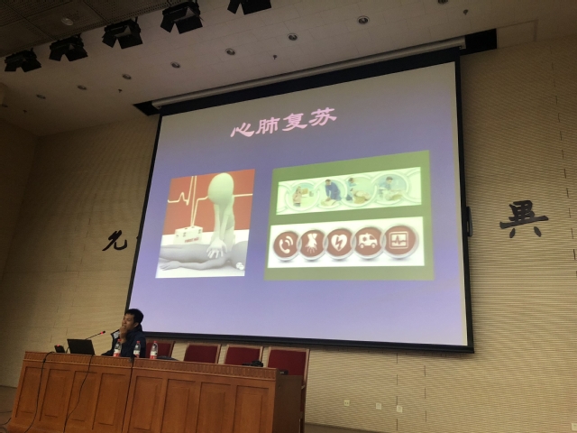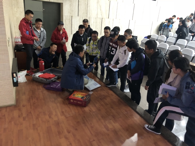 崔建林老师通过理论讲解与现场互动的方式,向大家普及心肺复苏、创伤包扎、中毒及异物入眼的处理等紧急救护常识。尽管色中色 的师生们没有专业的医学背景,但仍能通过崔老师通俗易懂的讲解,掌握每个救护过程的关键步骤及其背后的医学原理。理论讲解过后,师生们还积极参与互动,通过教学模型来进行心肺复苏、创伤包扎的练习。