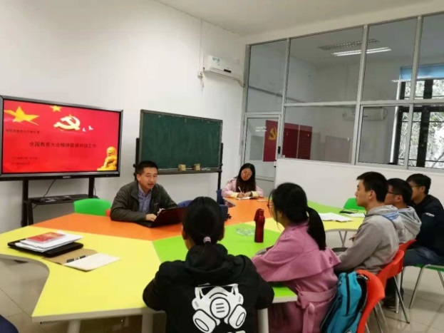 落实校党委学习全国教育大会精神宣讲对谈的要求,党委理论学习中心组、党支部集中开展专题活动。院党委中心组全体成员联系党支部进行宣讲对谈。