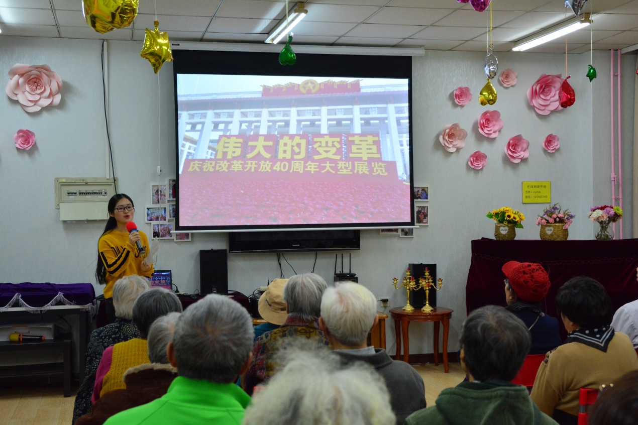 支部书记王艺驰说:“今年是改革开放四十周年,这是一个巧妙的时间将在坐的爷爷奶奶党员们跟我们年轻党员联系起来,四十年前爷爷奶奶们也就差不多我们这个年纪,站在时间轴两个端点的,四十年后的我们接过您们的接力棒,务实前行。”
