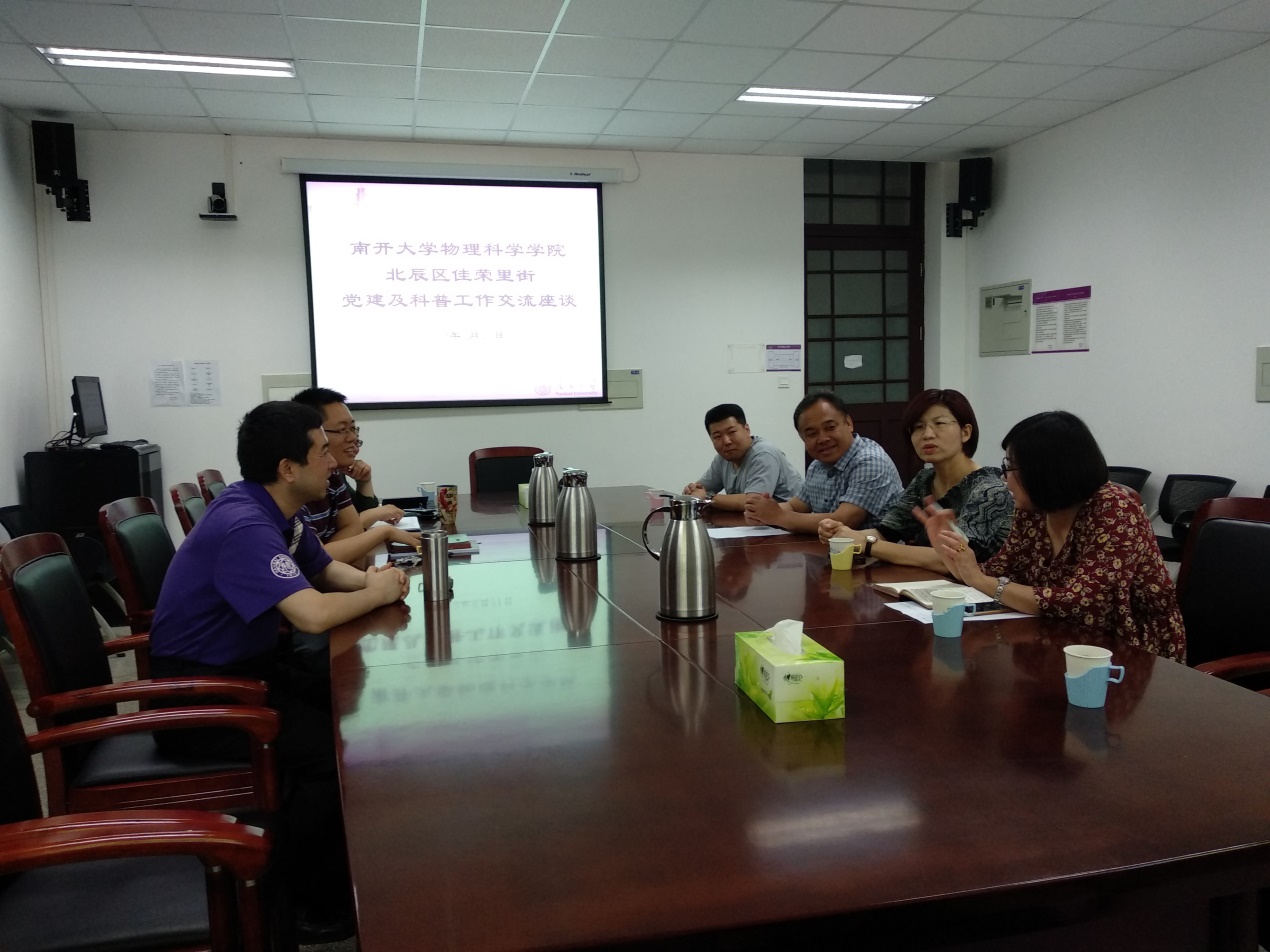5月22日上午,北辰区佳荣里街党工委副书记石岩华等一行人访问物理科学科学学院,就“三全育人”实践教育基地和党建工作等展开交流与座谈,学院党委负责人以及院工会主席等参加。交流会后,来访人员参观了物理演示实验厅。