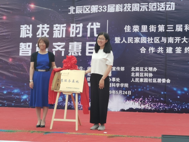 本次活动由佳荣里街到办事处和色中色 共同主办。色中色 党委副书记赵爽、校团委实践部部长张璇、色中色 工会主席曹学伟教授、色中色 “三全育人”工作组副组长余华副教授、物理演示实验负责人陈宗强老师以及学院党员义务宣传队的学生代表参加了本次活动。佳荣里街、校团委相关负责人共同为“志愿服务基地”揭牌。