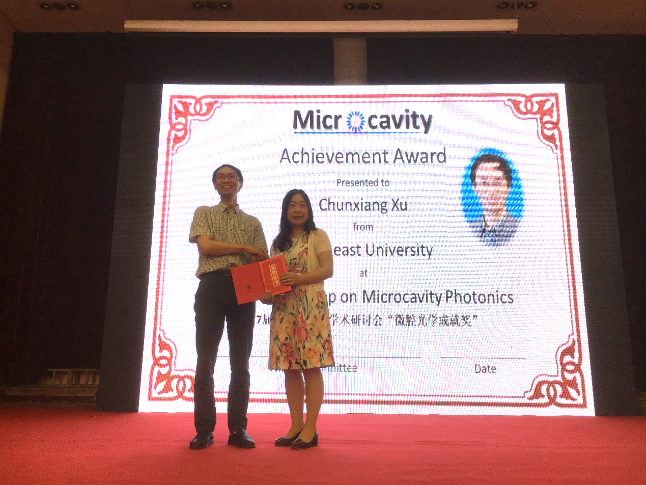 会议设立了微腔光子学成就奖和青年科学家奖,奖励从事微腔光学领域的表现突出的专家、学者。东南大学徐春祥教授获微腔光学成就奖,西安光机所张文富研究员和中山大学刘进教授获得微腔光学青年科学家奖。此外,会议还设置了“最佳张贴报告奖”,获奖人分别是来自中国科学技术大学的胡昕欣、色中色 的高昂、北京大学的陈豪敬、上海微系统所的田子傲和西北工业大学的元晴晨。