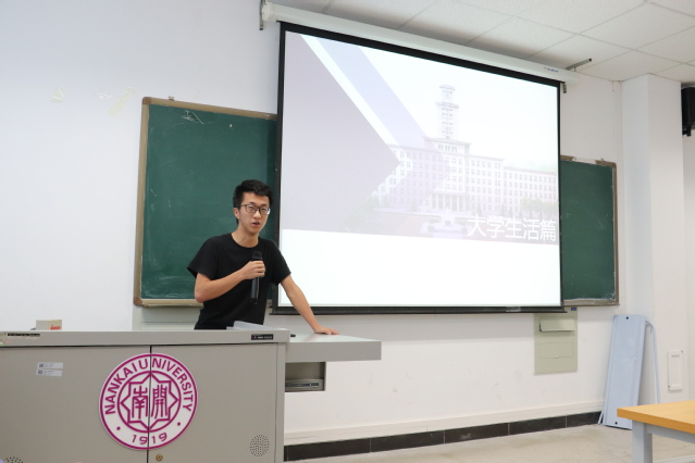 两位高年级本科生向新生分享了自己的大学生活经验,表示保持一个努力积极不颓废的态度与自觉自律的良好习惯是进步的不二法门,知识所给予的回报总会与你的努力相匹配,没有人的勤劳会被时间所辜负。所以无论今日学在南开,或他日走向世界,都要持有一种虚心向学、踏实努力的良好态度,这样才能做到“苟日新,又日新”。
