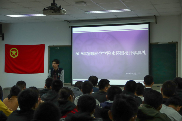 张学良在致辞中对团校开班表示热烈祝贺并对团校各团员提出了认真听讲、 不无故缺席 、及时反馈三点建议,同时提醒同学们要学会提出自己的想法,养成批判性思维。随后,张学良为团校授旗。19级大班团支书许天翊同学在代表全体团校学员发言时承诺,将严守团校各项规定,认真履行各项学习实践任务,提升自己的综合能力与素养。团校校长李玉奇同学向团校学员详细讲解了团校课程设置、团员结业条件、心得和调研说明等内容。