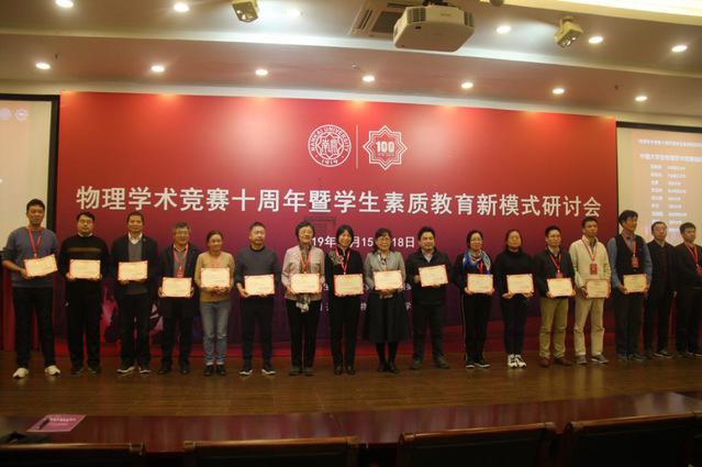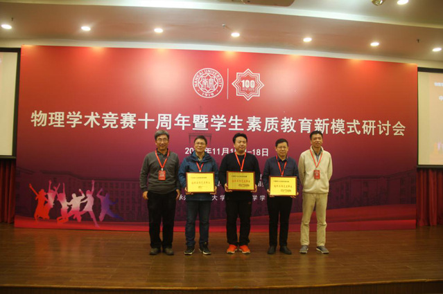 研讨会于11月17日下午在色中色 省身楼举行了闭幕式,中国物理学会物理教育委员会秘书长刘玉鑫教授作了题为“多措施并举,为培养优秀创新型人才而奋斗!”的大会报告,中国大学生物理学术竞赛组委会和中国高中生物理创新竞赛组委会为积极开展物理学术竞赛教学活动并在教育教学改革方面取得丰硕成果的单位级个人进行了表彰。分别授于63个单位及个人“物理学术竞赛突出贡献奖”、“中国大学生物理学术竞赛组织工作先进单位”、“中国大学生物理学术竞赛组织工作先进个人”、“中国高中生物理创新竞赛组织工作先进单位”、“物理学术竞赛教育教学改革先进单位”、“物理学术竞赛教育教学改革先进个人”并颁发证书。