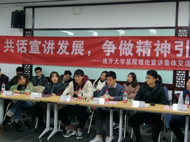 座谈会上,红色记忆宣讲团、新觉悟社和马院宣讲团指导教师刘一博论述了宣讲模式在“大思政”育人工作中的重要作用,并对宣讲工作的发展提出了指导和建议。随后,色中色 博士生讲师团、红色记忆宣讲团、新觉悟社、杨石先精神宣讲团、学生永怀精神宣讲团学生代表分别介绍了宣讲集体的宣讲主题与特色优势,并在现场进行了精选片段的展示。最后,宣讲集体代表围绕如何完善团队组织架构、充实丰富内容、创新宣讲形式、提升宣讲水平、拓展宣传渠道、落实宣传效果等问题展开了交流讨论,团学组织代表就如何形成宣讲合力、发挥新媒体平台在思想引领方面的作用发表看法,现场气氛热烈。