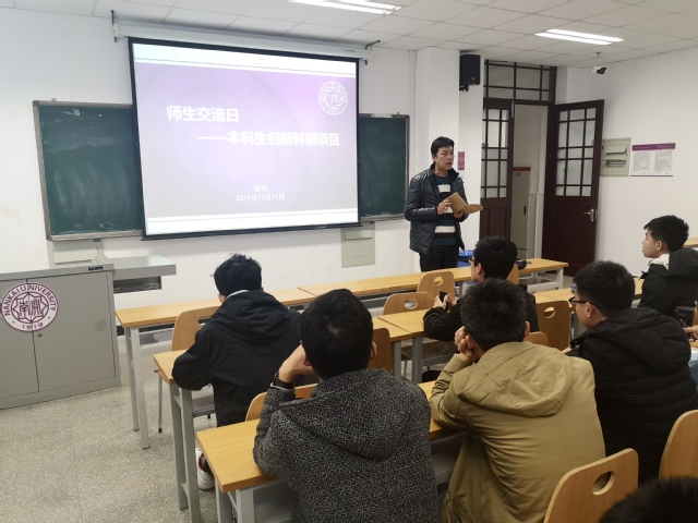 本次“师生交流日”邀请学院负责本科生科研创新工作的余华老师担任主讲。余华首先对百项、市创、国创进行了总体情况介绍,随后从科研项目书面材料制作、项目开展与答辩、经费申请与报销三个方面进行详细讲解,就科研创新项目实施过程中的重点与难点进行了强调。最后,学生们就课外科研创新活动遇到的问题与余华进行交流。