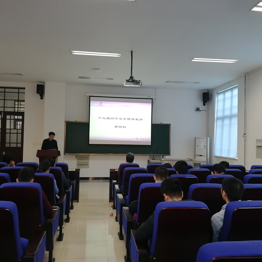 最后,受学院党委委托,院党委委员、机关教工党支部书记、副院长唐柏权进行了十九届四中全会精神宣讲。