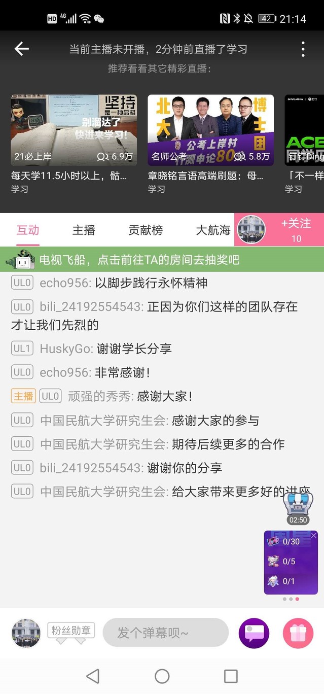 4月25日,宣讲团通过“B站直播”的形式面向中国民航大学的研究生群体分享了郭永怀的故事。散场后,屏幕上的弹幕互动仍在继续,“谢谢你的分享”“正因为你们这样的团队存在,才让我们先烈的(故事走进了更多人的心中)”……一句句认可充分彰显了宣讲团的组织价值,也激励着团队的同学们更加积极地投入工作,努力号召带动更多青年“以脚步践行‘永怀精神’”。