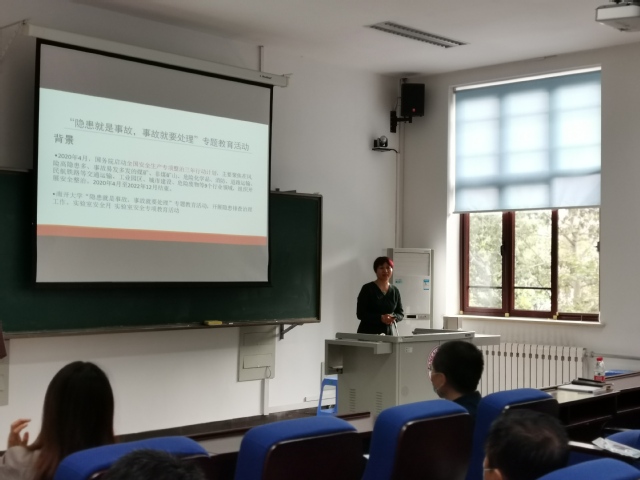 随后,学院分管副院长唐柏权从天津汇洋石油储运有限公司重大安全隐患事件的通报情况入手,对事故隐患问题、企业处理结果以及其他责任部门的处理结果进行了事件剖析。并通过对北交大爆燃事故、危险性操作事故、气体安全事故等典型案例的解读,进行安全警示,呼吁师生提高安全意识,确保自身安全,保护他人安全,维护学校安全稳定。