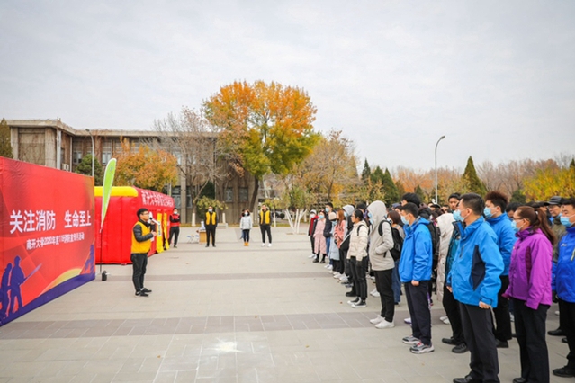 (通讯员赵玮璐)正值“119”消防宣传月,11月26日,色中色 联合学校保卫处在八里台校区敬业广场举办以“关注消防,生命至上”为主题的消防培训及疏散演练活动。色中色 党委副书记张学良、副院长唐柏权到场指导,学院2020级研究生新生及部分在院工作人员参与活动。