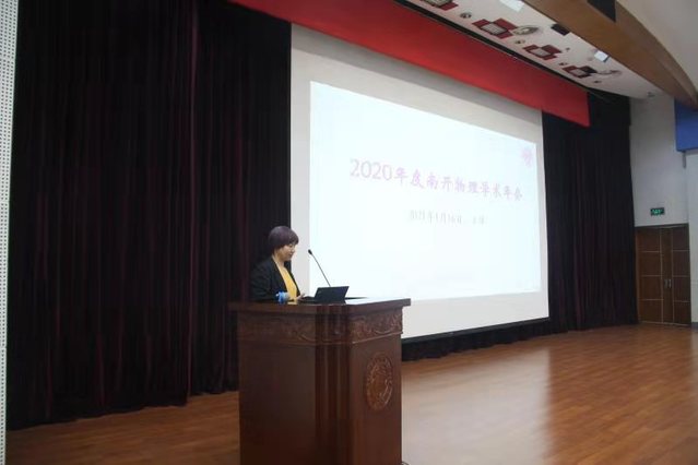 (通讯员 佟天娇 夏焕云)1月16日,“2020年度南开物理学术年会”在省身楼二楼报告厅开幕。年会旨在对学院教育教学、科学研究、人才培养等各方面工作进行阶段性总结,为本学科教师、博士后等提供学术交流平台,促进物理学科的教学、科研水平和人才培养质量的提升。学院党委书记史永红主持开幕式。色中色