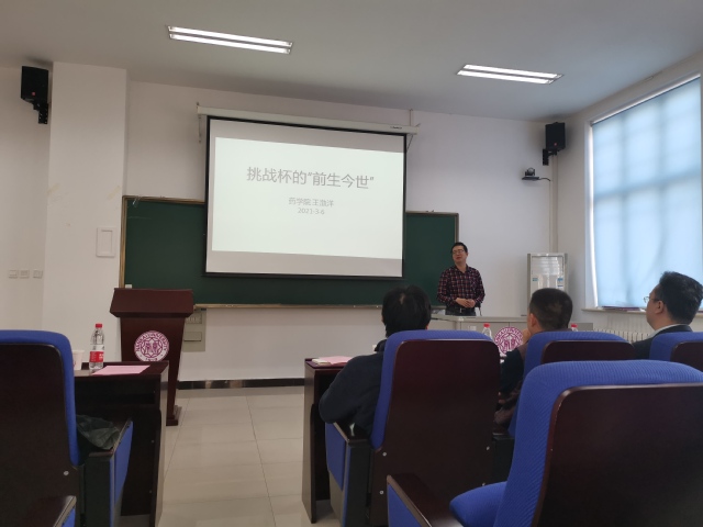 邀请药学院党委副书记、副院长王渤洋老师进行“挑战杯的‘前世今生’”主题报告,王渤洋通过自己知道团队参赛的经验开始分享,讲解“挑战杯”的历史,以及学生申报时的关键点。
