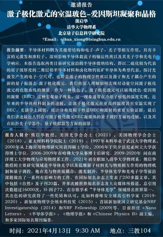 【学术报告】激子极化激元的室温玻色-爱因斯坦凝聚和晶格
