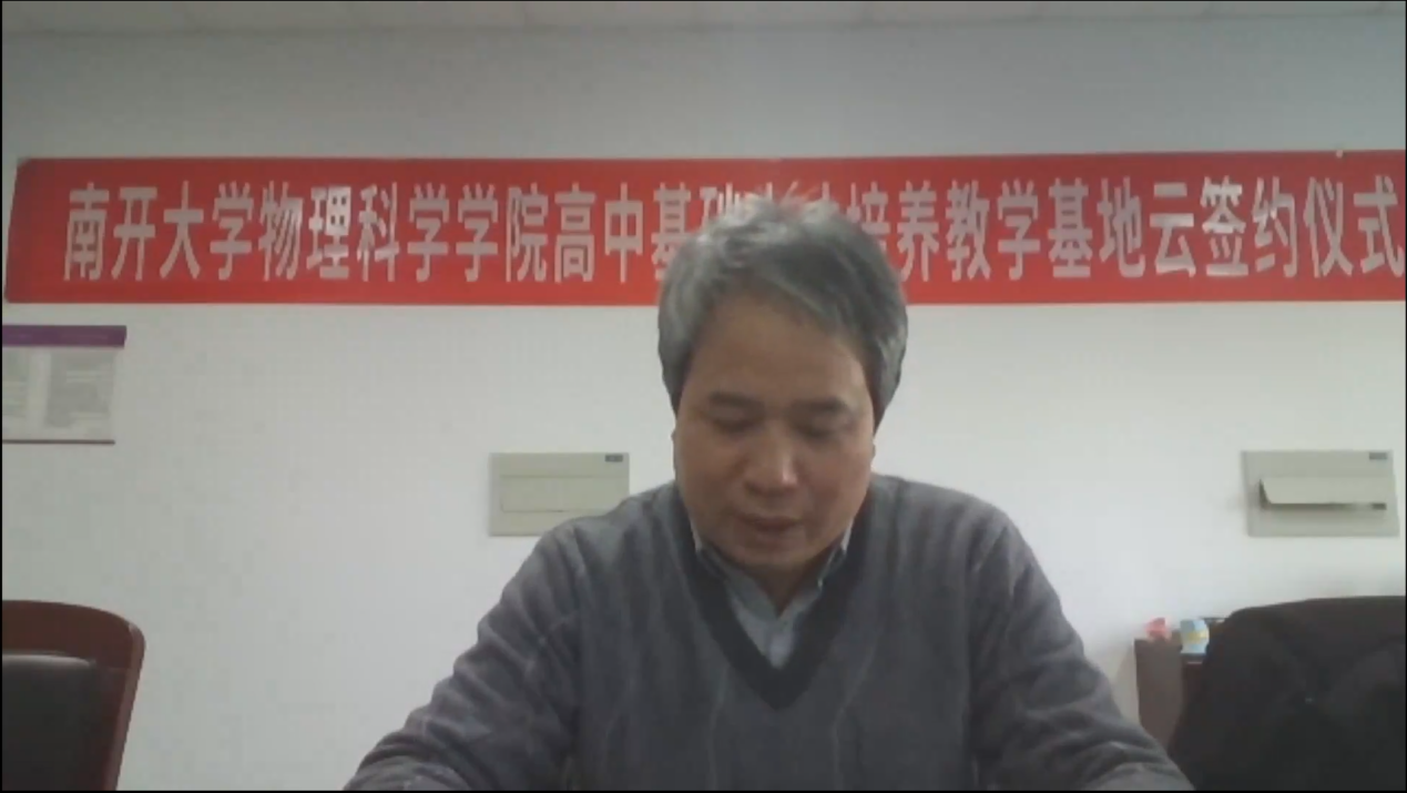 物理学科高中基础人才培养与教学实践计划执行委员会主任吴雨浓介绍了物理学科高中基础人才培养教学基地建立的初衷,在强化高中阶段物理基础学科学生培养的同时,全面提高学生学科素养,真正做到把高校教研、教学引进高中,探索实践高中人才培养的多元化发展,开展并落实“大中衔接”的人才培养模式。他期待色中色 与优秀中学加强合作,让更多优秀学子在南开校园起航他们的梦想,共同培养出更多更好的物理学科人才。