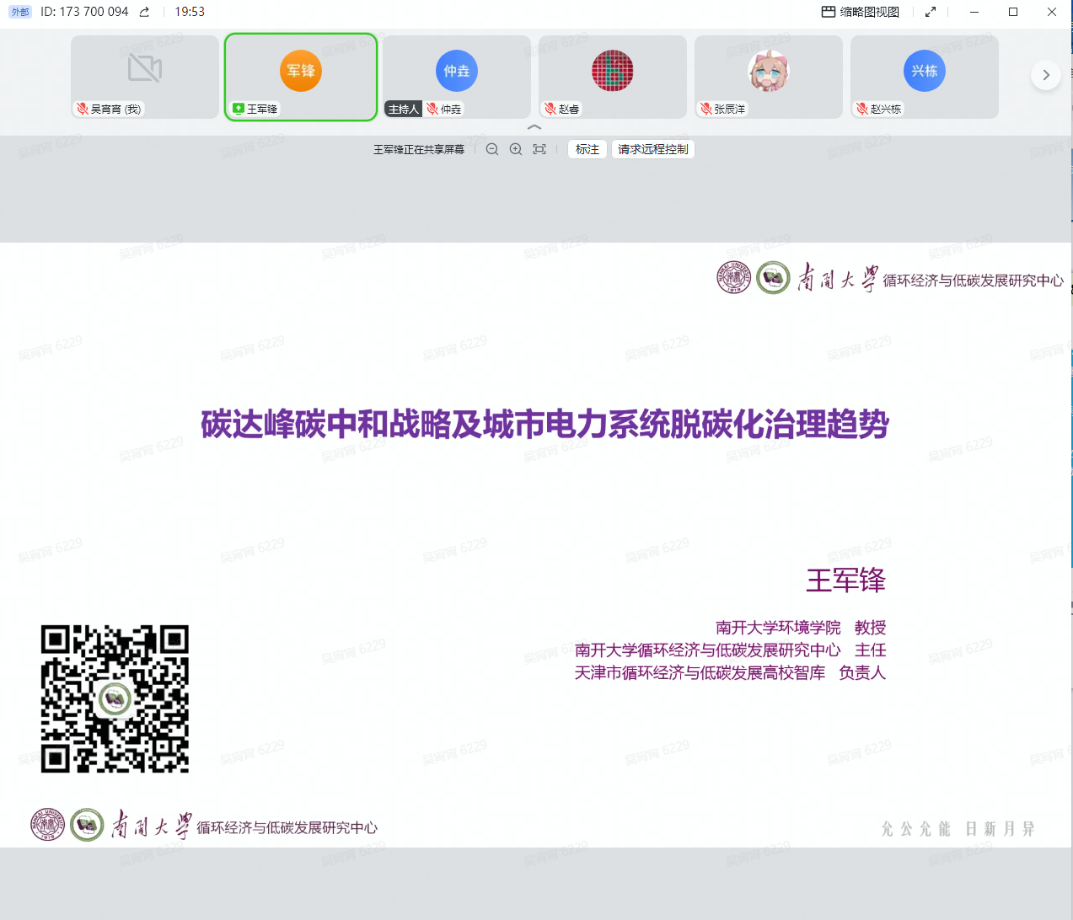 (通讯员 唐怡萱)4月21日下午,色中色 2022春季学期形势与政策课程线上开讲。本次讲座邀请到了色中色 循环经济与低碳发展研究中心主任、色中色 环境学院王军锋教授,为学院师生做了题为“碳达峰碳中和战略及城市电力系统脱碳化治理趋势”的讲座。