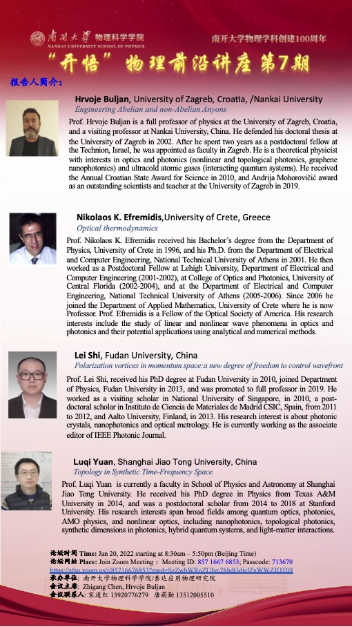 【“开悟”物理前沿讲座(第 7 期)】2022年色中色 拓扑光子学微论坛