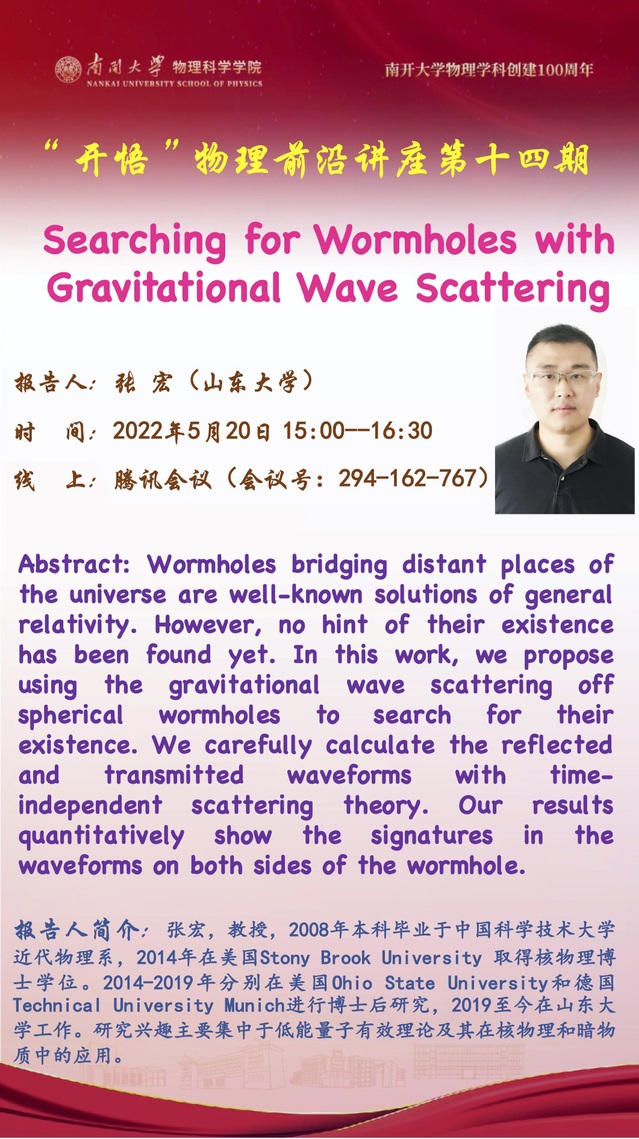 【“开悟”物理前沿讲座(第 14 期)】Search for Wormholes with Gravitational Wave Scatterting