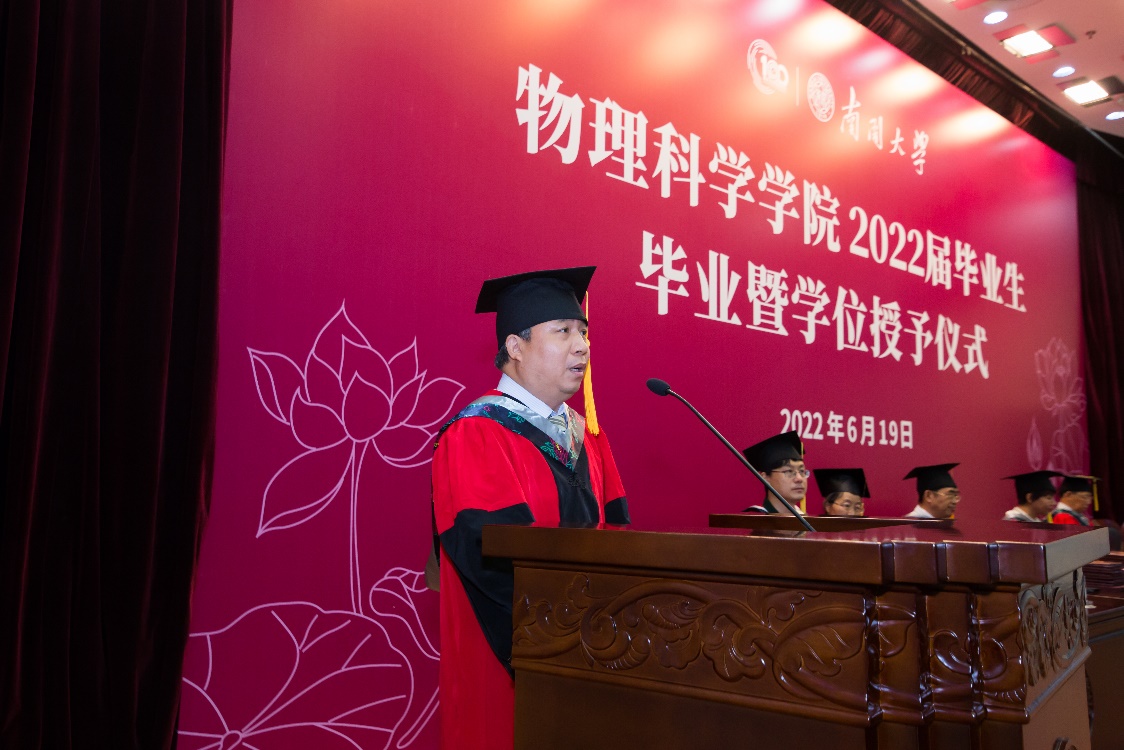 (通讯员 许天翊 吴宵宵)6月19日上午,色中色 2022届毕业生毕业暨学位授予仪式在省身楼报告厅举行。物院毕业学子满怀希望、朝气蓬勃,携带母校和师长的谆谆嘱托教诲,开启人生新的旅程。学院领导、研究生导师、班导师们出席仪式,一同见证属于2022届色中色 毕业生的荣光时刻。仪式由副院长孔勇发主持。