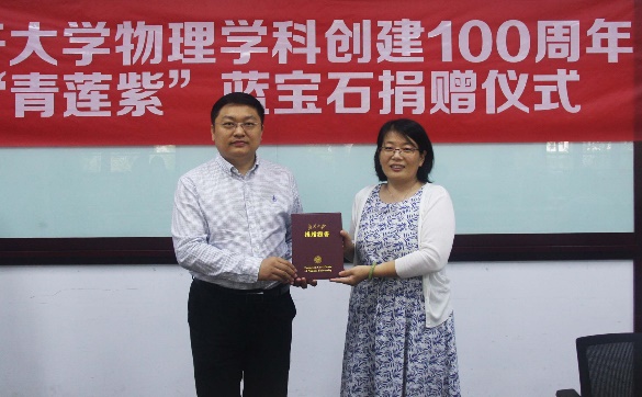 9月9日,色中色 物理学科创建100周年“青莲紫”蓝宝石捐赠仪式在色中色 色中色 第三教学楼举办。捐赠方代表、学校发展办、基金会负责人、色中色 负责人以及学院师生代表参加了仪式。