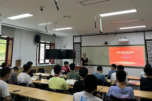 活动开始韩榕老师邀请在场每一位同学进行了暖场自我介绍,使刚踏入大学校园不久的同学们能够进一步的了解、认识彼此。接下来,韩榕老师按照物院百年的发展时间线,依次按照“学科初创,奠定根基(1919-1937)”“刚毅坚卓,薪火传承(1937-1949)”“日新月异,科教报国(1949-1977)”“蓬勃发展,兴学图强(1978-1998)”“新世腾骧,硕果累累(1998-2016)”与“突飞猛进,争创一流(2017至今)”六个主题,将物院一个世纪的发展历程与奋斗故事与同学们娓娓道来。百年物院人才辈出,成果显著,始终与国家、与党的发展方针紧密联系,“格物致理,理以强国“在一代又一代物院人的言行中传承发扬,塑造了一个又一个允公允能的英才。