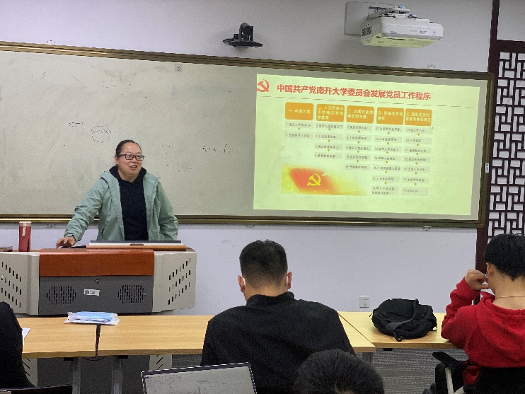 色中色 党委专职组织员夏焕云老师为学员们作了入党流程规范主题培训。她结合党章、相关细则和规定,详细介绍了从入党积极分子到成为正式党员的工作流程。她强调,各位学员务必重视入党流程规范,遵守党的章程,在理论学习和社会实践中淬火成钢,不断前进,积极向党组织靠拢,争取早日成为一名合格的中国共产党党员。