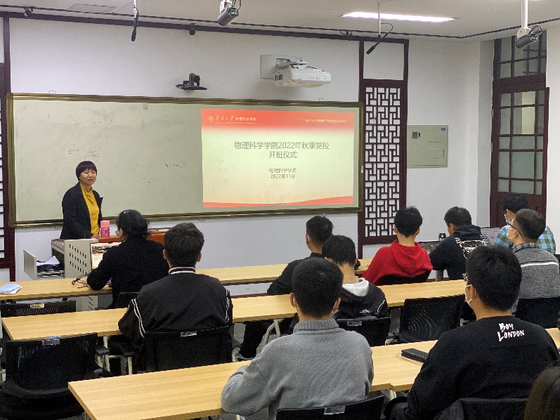 开班仪式结束后,色中色 党委书记史永红老师为学员们作了百年院史主题讲座。她谈到,南开物理始终与祖国和人民共命运、与时代和社会相偕行。一代代南开物理人坚持“爱国奋斗,公能日新”的南开精神,饶毓泰、郭永怀等一位位大师先烈在诸多领域取得了令人瞩目的成绩,为国家富强、民族复兴做出了重要贡献。她给予了入党积极分子同学们殷切的期盼:坚定与国家和民族同呼吸、共命运,始终将小我融入大我,践行“公能”校训,坚持“爱国”和“创新”,以新时代新作为续写新百年的更大荣光,为我国科技自立自强和中华民族伟大复兴的中国梦贡献更多力量。