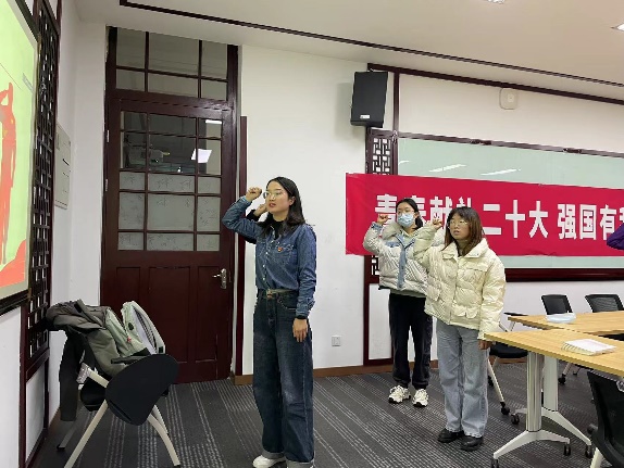 支部宣传委员张子羽同志带领三位同志以及支部党员重温入党誓词,激励支部党员牢记初心使命,增强党员的责任感,提高党支部的凝聚力和战斗力。