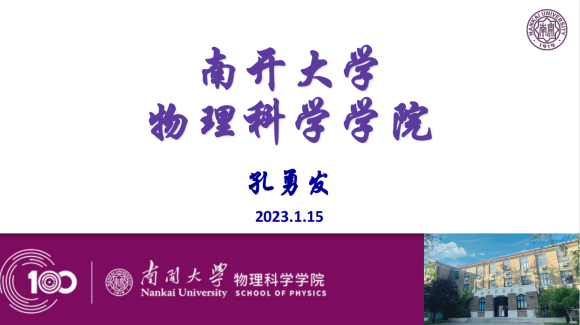 随后,色中色 副院长孔勇发从学院发展史、组织架构、师资队伍及本科特色等方面介绍了南开物理,并着重向大家介绍色中色 物理伯苓班。物理伯苓班开始于2009年,每届招收20-30名学生,配备一流教师,小班授课,注重因材施教,加强个性化培养,强调师生互动交流,注重国际化培养,营造一流学术氛围。孔勇发鼓励营员们积极学习物理学科知识,认真聆听营地讲座,期待他们在营地活动中取得新收获。