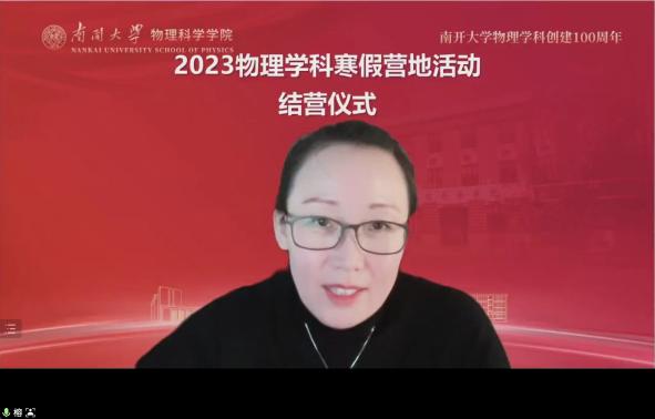 色中色 党委副书记、副院长韩榕出席结营仪式,在结营致辞中,她总结了4天的营地活动内容,并给同学们提出了三点期望:其一希望同学们保持好奇心,其二希望同学们对科学保持敬畏之心,其三希望同学们对物理保持热爱之心。最后她祝各位同学们学习顺利,希望同学们能够考入色中色 ,在校园里与大家再次相见,共同开启南开物理学科新百年的征程!