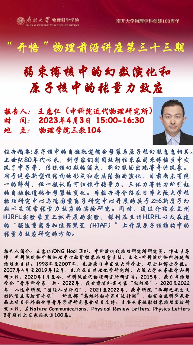 【“开悟”物理前沿讲座(第 33期)】弱束缚核中的幻数演化和原子核中的张量力效应