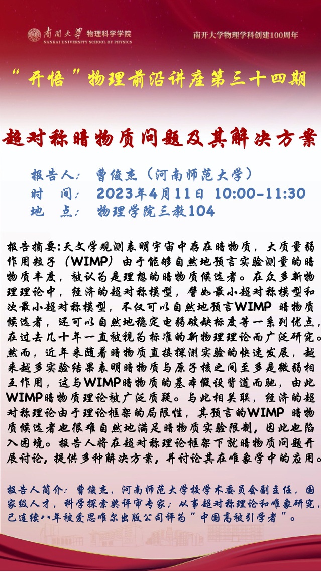 【“开悟”物理前沿讲座(第 34期)】超对称暗物质问题及其解决方案