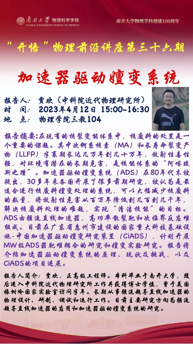 【“开悟”物理前沿讲座(第 36期)】加速器驱动嬗变系统
