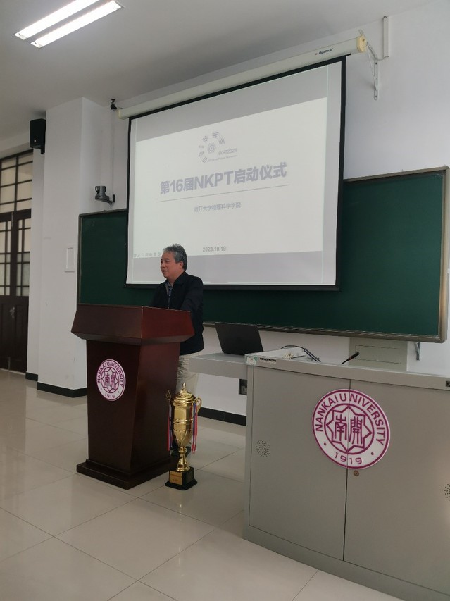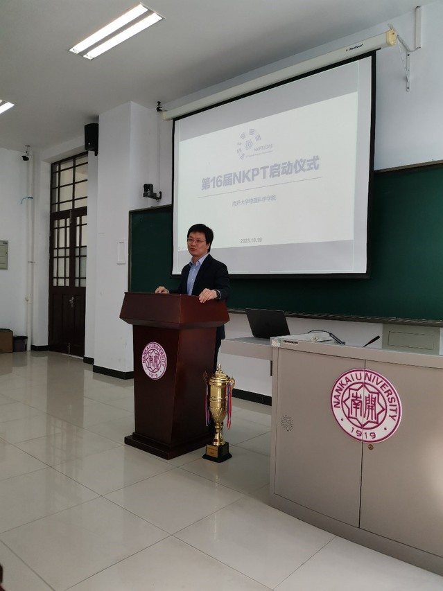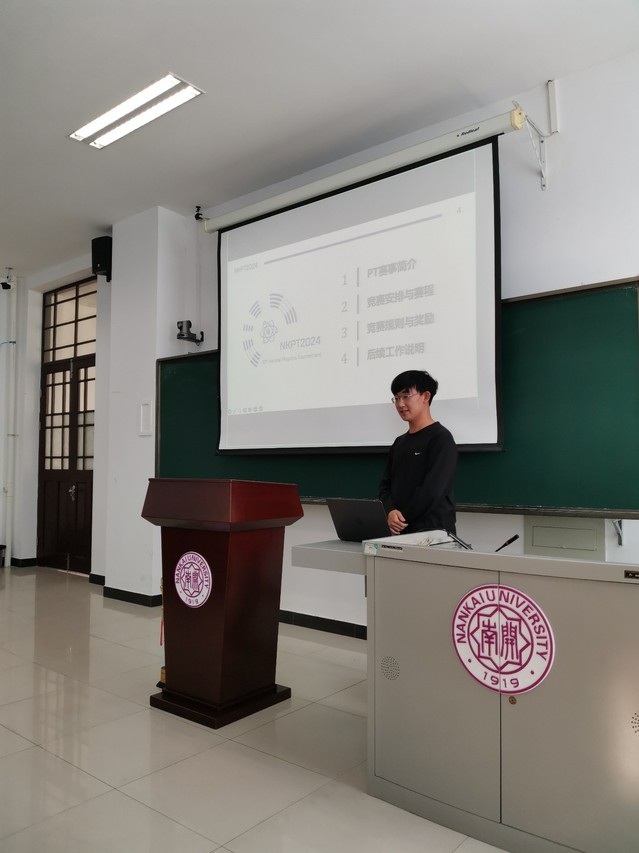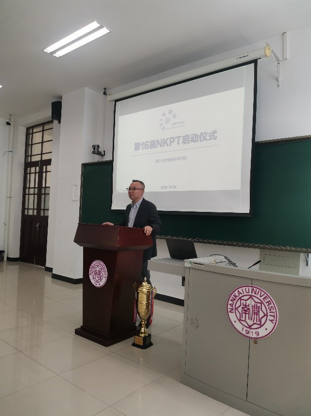 之后,金柏江副部长发表讲话。他指出,青年学生参与竞赛的目的并不仅仅是为了获奖,而是通过竞赛的准备过程中,将自己掌握的知识融会贯通,进而挖掘个人的创新能力;希望同学们在参与PT系列赛的过程中不仅收获扎实的学识,还能提升个人的表达能力与团队协作能力。他期待南开物理人在PT的过程中能够打造出享誉全国的学术竞赛品牌。