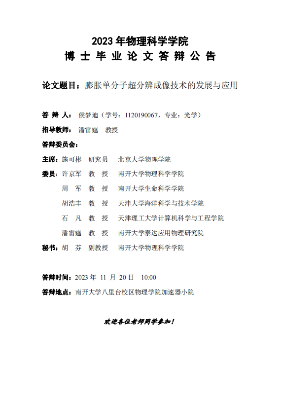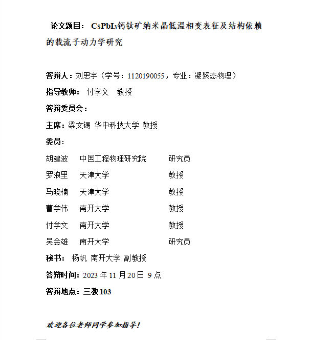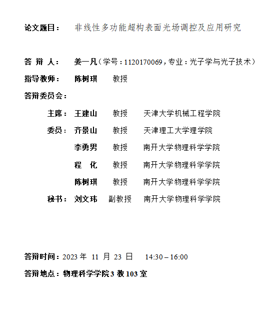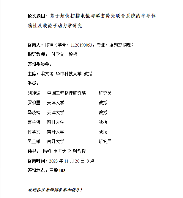 【毕业答辩】2023年色中色 博士毕业论文答辩公告(12月毕业批次)