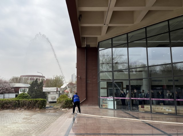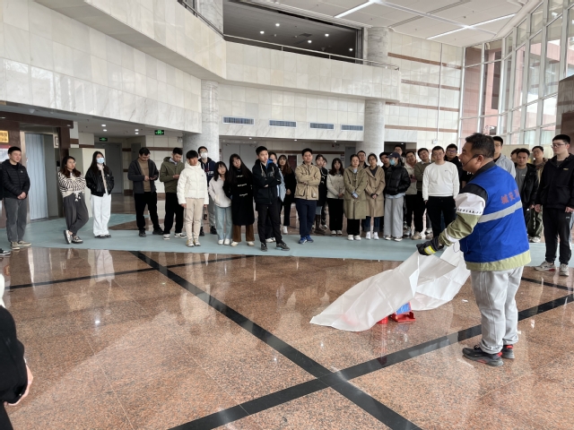 火灾疏散演习完毕后,保卫处工作人员向在场的师生介绍了灭火毯、消防防毒面具、灭火器、消防水带等多种消防用具的使用方法和注意事项。随后,师生们在专业人士的指导下进行了模拟灭火演练,掌握了灭火器、消防栓的正确使用方法。