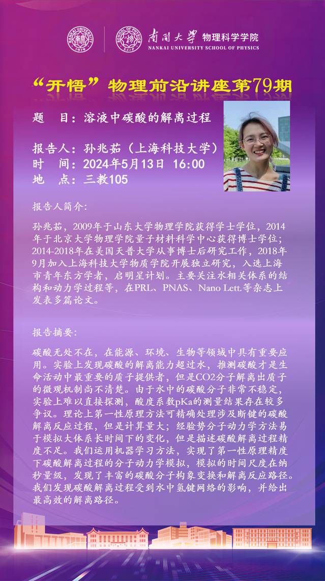 【“开悟”物理前沿讲座 (第79期)】溶液中碳酸的解离过程