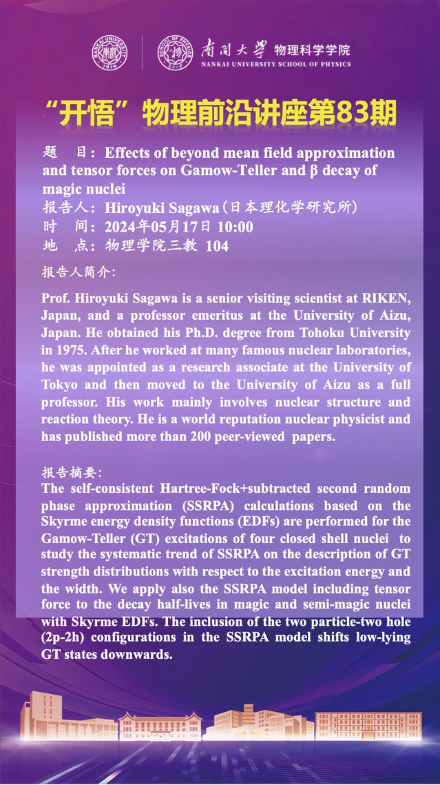 【“开悟”物理前沿讲座 (第83期)】Effects of beyond mean field approximation and tensor forces on Gamow-Teller and β decay of magic nuclei