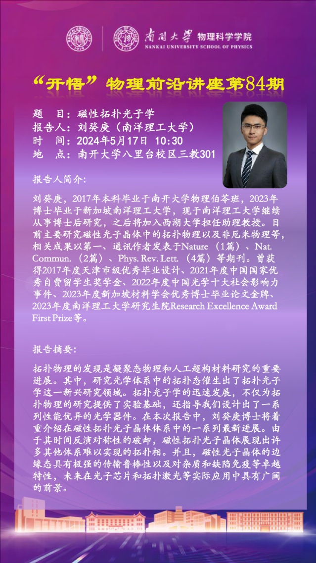 【“开悟”物理前沿讲座 (第84期)】磁性拓扑光子学