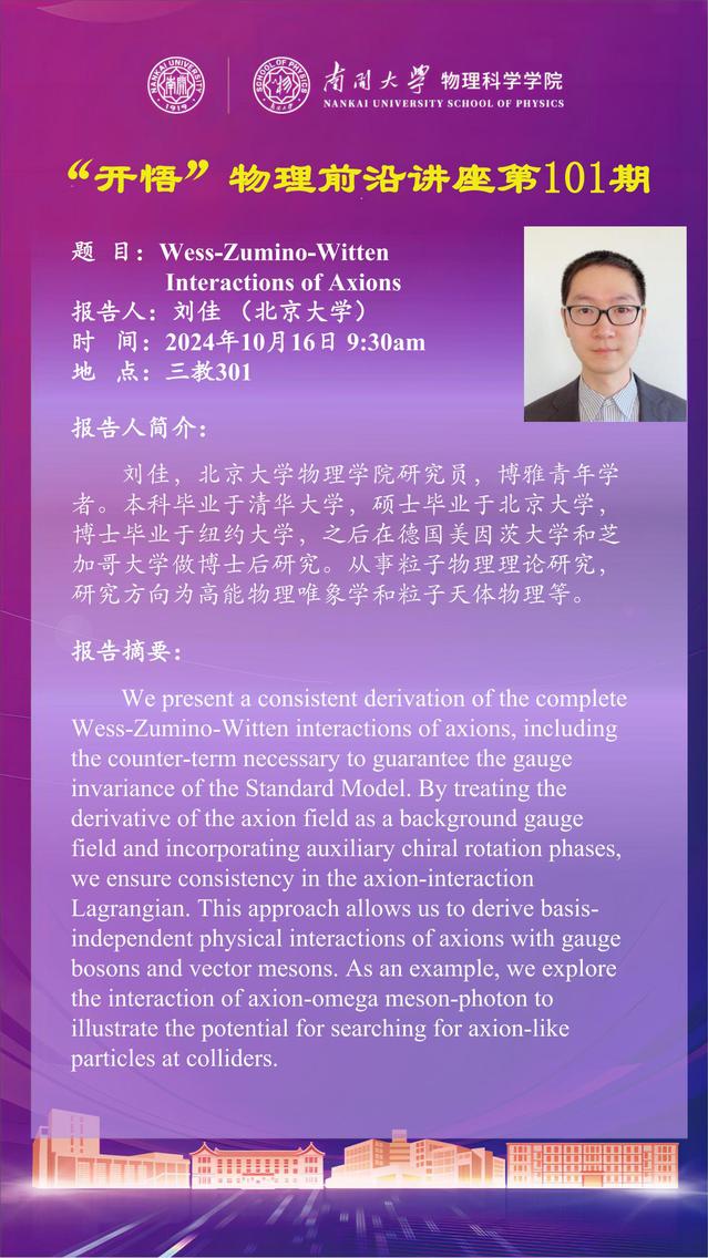 【“开悟”物理前沿讲座 (第101期)】Wess-Zumino-Witten Interactions of Axions