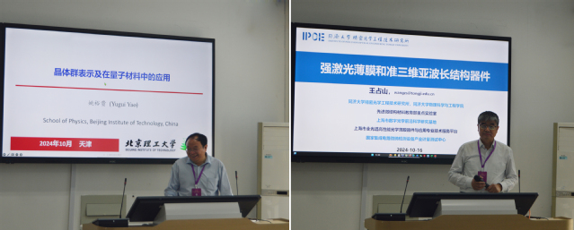 姚裕贵教授报告题为“晶体群表示及在量子材料中的应用”。报告中介绍了课题组近年来在晶体群表示及其在量子材料中应用的研究进展,如计算(磁)空间群(含1651种磁群、528种磁层群、394磁杆群)任意不可约(共)表示的工具、晶体中演生粒子百科及应用、面内反常霍尔效应、电控自旋效应、电致霍尔效应、角层耦合效应的设计与实现等。