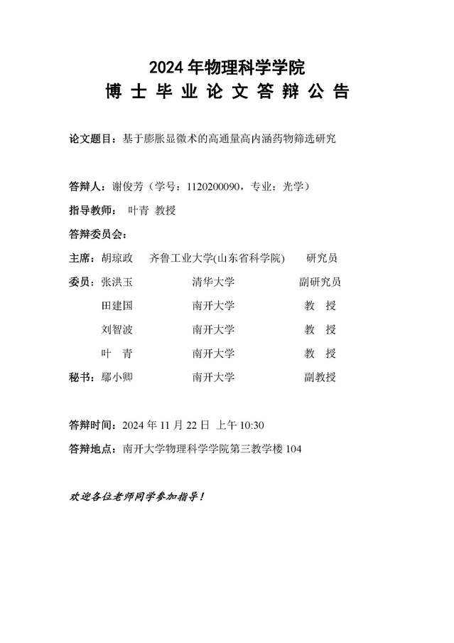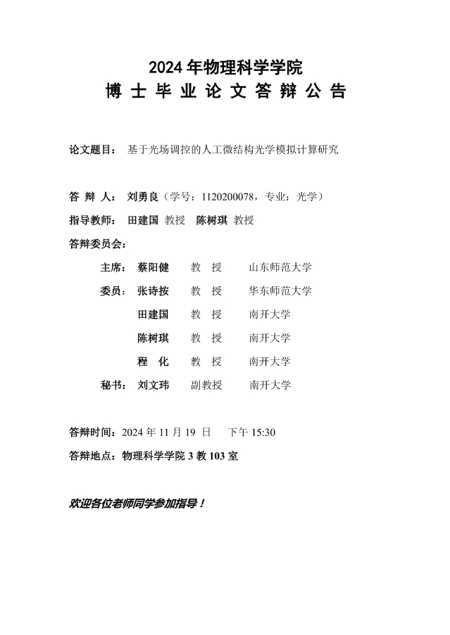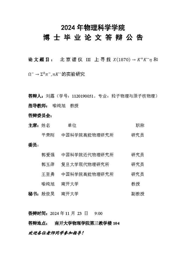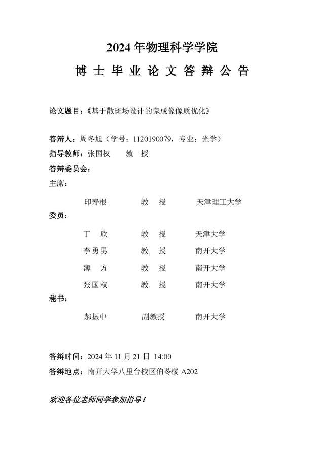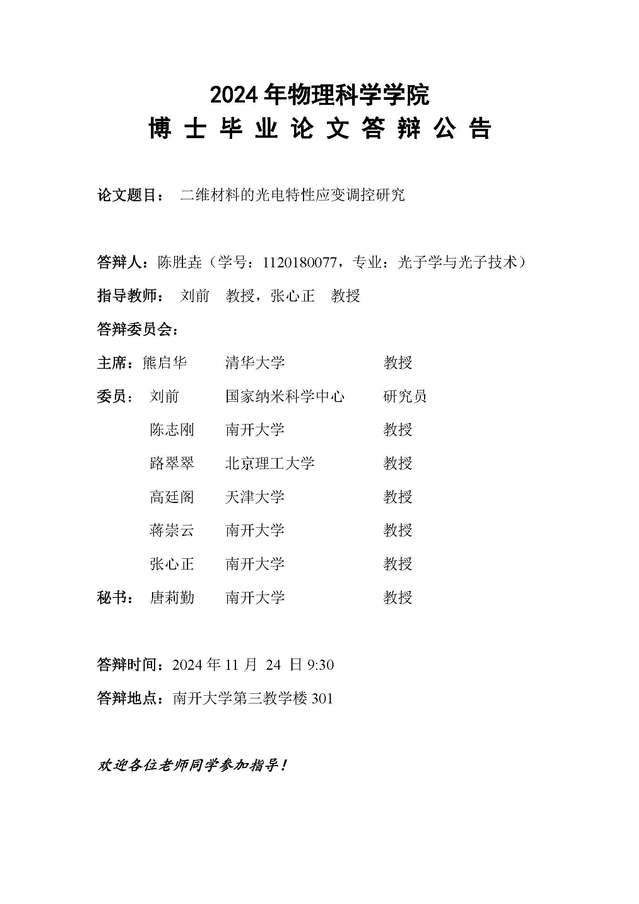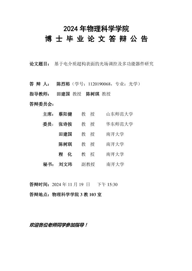 【毕业答辩】2024年秋季学期色中色 博士毕业论文答辩公告