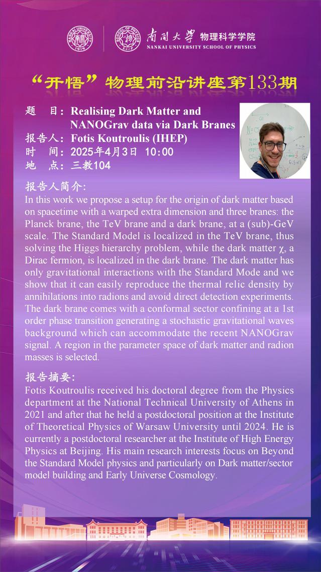 【“开悟”物理前沿讲座 (第133期)】Realising Dark Matter and NANOGrav data via Dark Branes