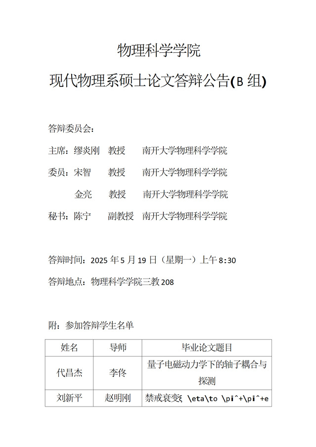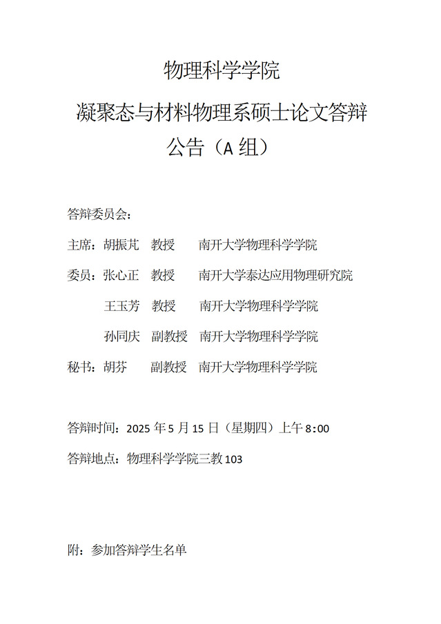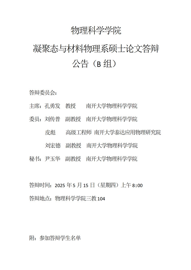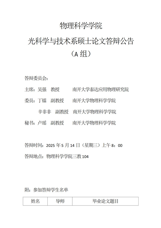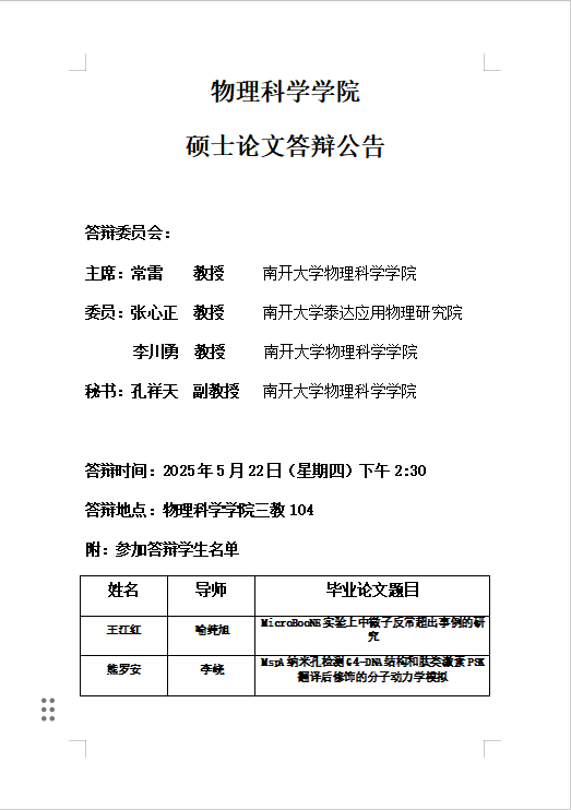 【毕业答辩】2025年春季学期色中色 硕士毕业论文答辩公告