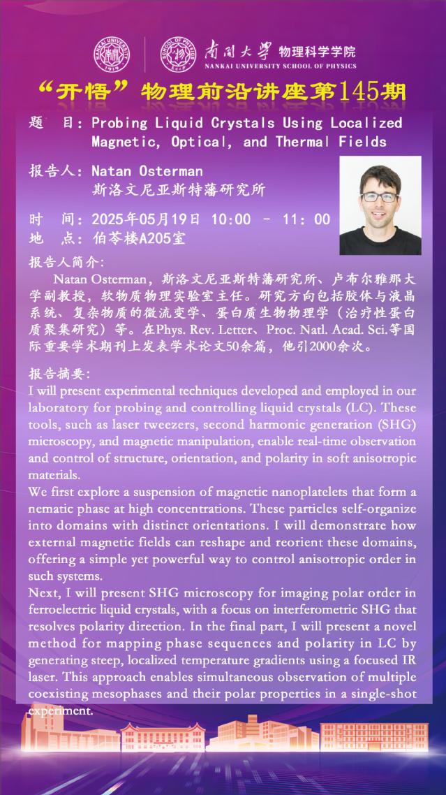 【“开悟”物理前沿讲座 (第145期)】Probing Liquid Crystals Using Localized Magnetic, Optical, and Thermal Fields