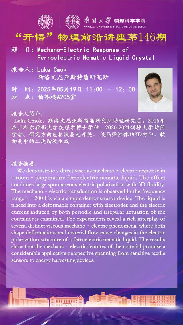 【“开悟”物理前沿讲座 (第146期)】Mechano-Electric Response of Ferroelectric Nematic Liquid Crystal
