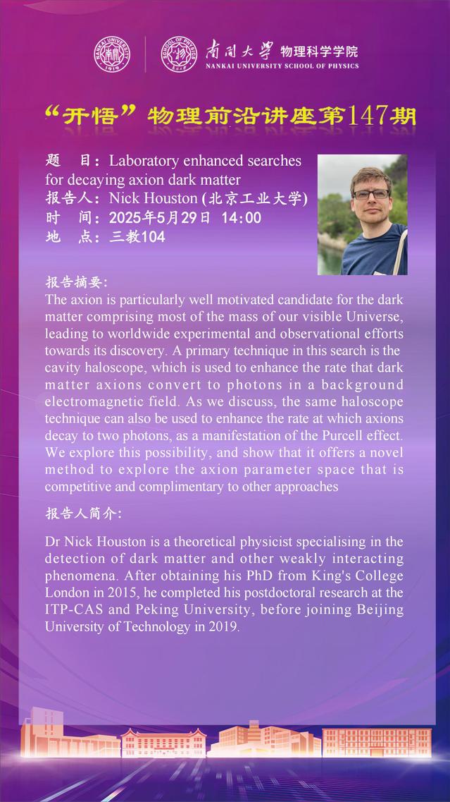 【“开悟” 物理前沿讲座 (第147期)】Laboratory enhanced searches for decaying axion dark matter